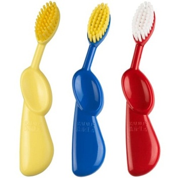 Взрослый надевает это приспособление себе на палец и аккуратно чистит ребенку десны. Особенности материала не позволяют нанести ущерб, оцарапать, повредить что-либо во рту у малыша.Когда ребенок сможет самостоятельно держать щетку, желательно купить с большой рукояткой и маленькой головкой. Также сама щетка должна быть гибкой, что бы облегчить доступ ко всему рту.